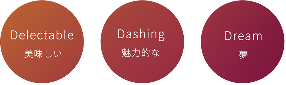 PROJECT.DのDには他にDelectable(美味しい)・Dashing(魅力的な)・Dream(夢)が込められております。